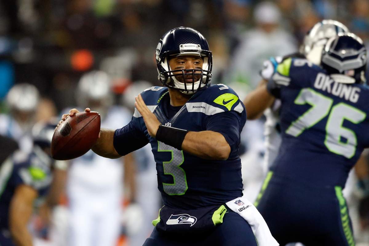 Russell Wilson and Seattle Seahawks are slight underdogs in most sportsbooks for Sunday’s Super Bowl. (Getty)
