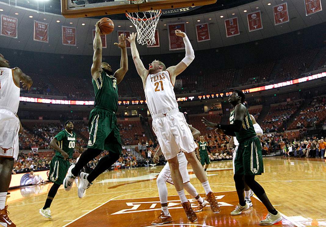 Rico Gathers #2 of the Baylor Bears shoots over Connor Lammert #21 of the Texas Longhorns at the Frank Erwin Center on March 2, 2015 in Austin, Texas. (Getty)