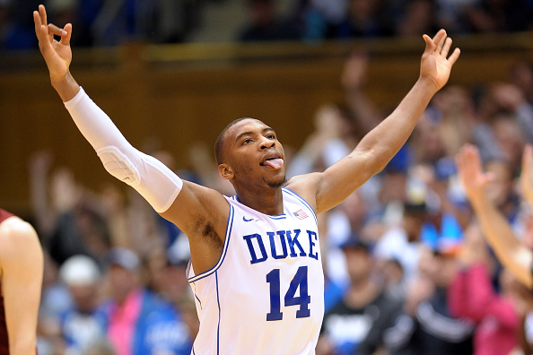 Rasheed Sulaimon #14 of the Duke Blue Devils reacts against the Boston College Eagles during their game at Cameron Indoor Stadium on January 3, 2015 in Durham, North Carolina. Duke defeated Boston College 85-62. (Getty)
