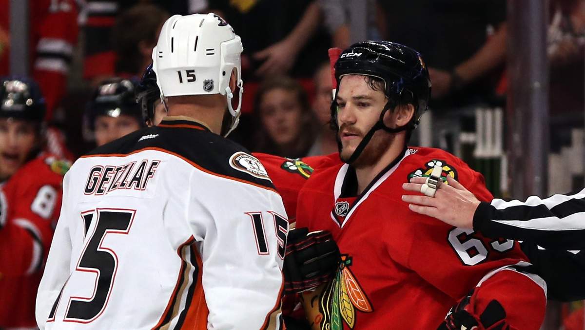The Blackhawks and Ducks battle it out Saturday night for a spot in the Stanley Cup Final. (Getty)