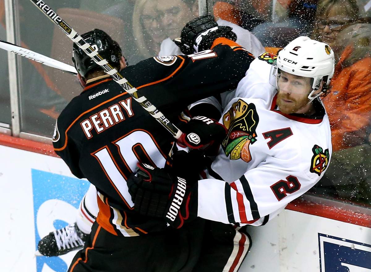 Corey Perry puts the Ducks to wihin 2 goals. However, the Blackhawks just answered the call and make it 5-2.