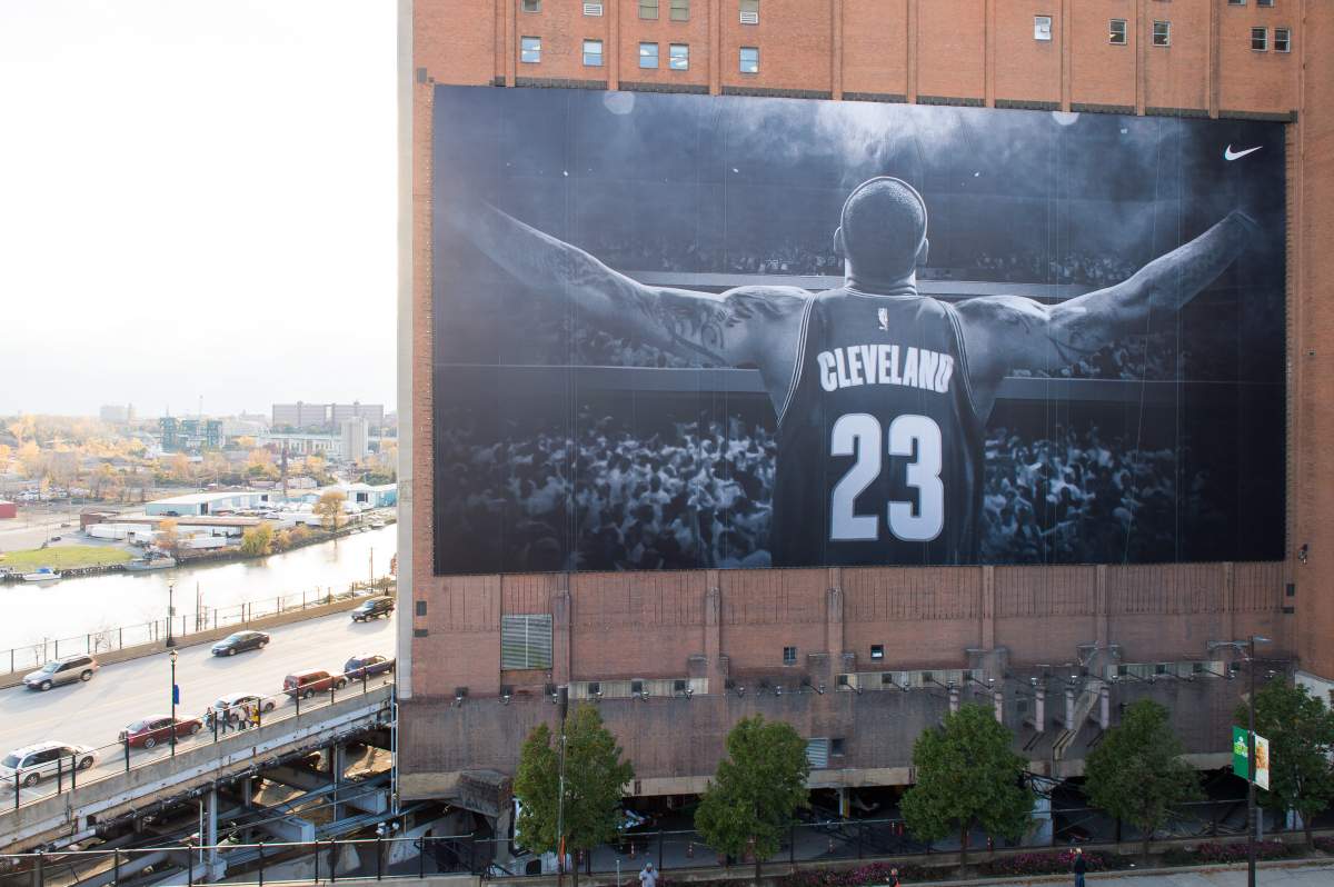 Nike put up this banner in Cleveland once Lebron resigned with the Cavs. (Getty)