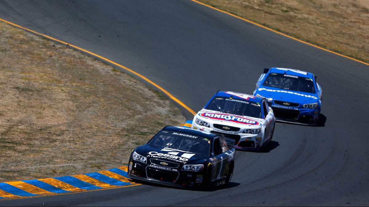 Jamie McMurray leads a pack of drivers at Sonoma Raceway last year. (Getty)