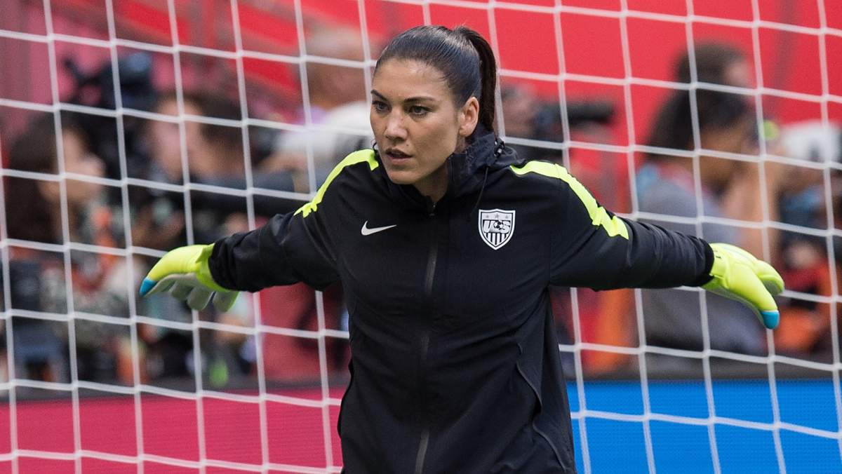 US goalkeeper Hope Solo stretches during practice. (Getty)