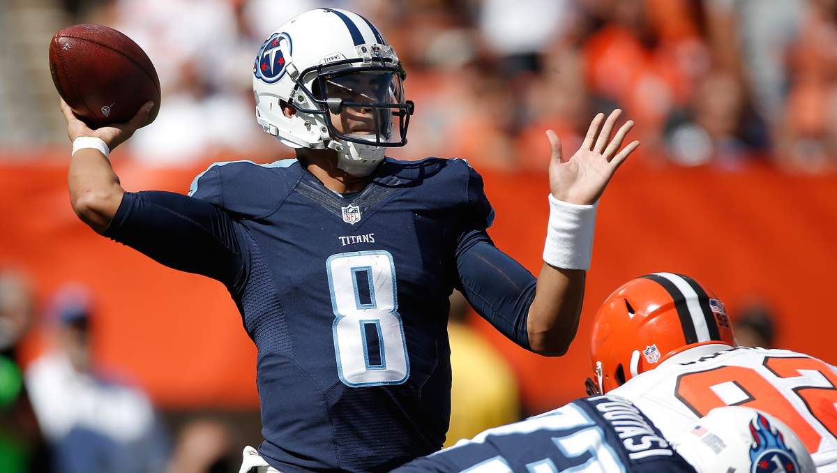 Marcus Mariota was sacked seven times in his first NFL loss last week (Getty).