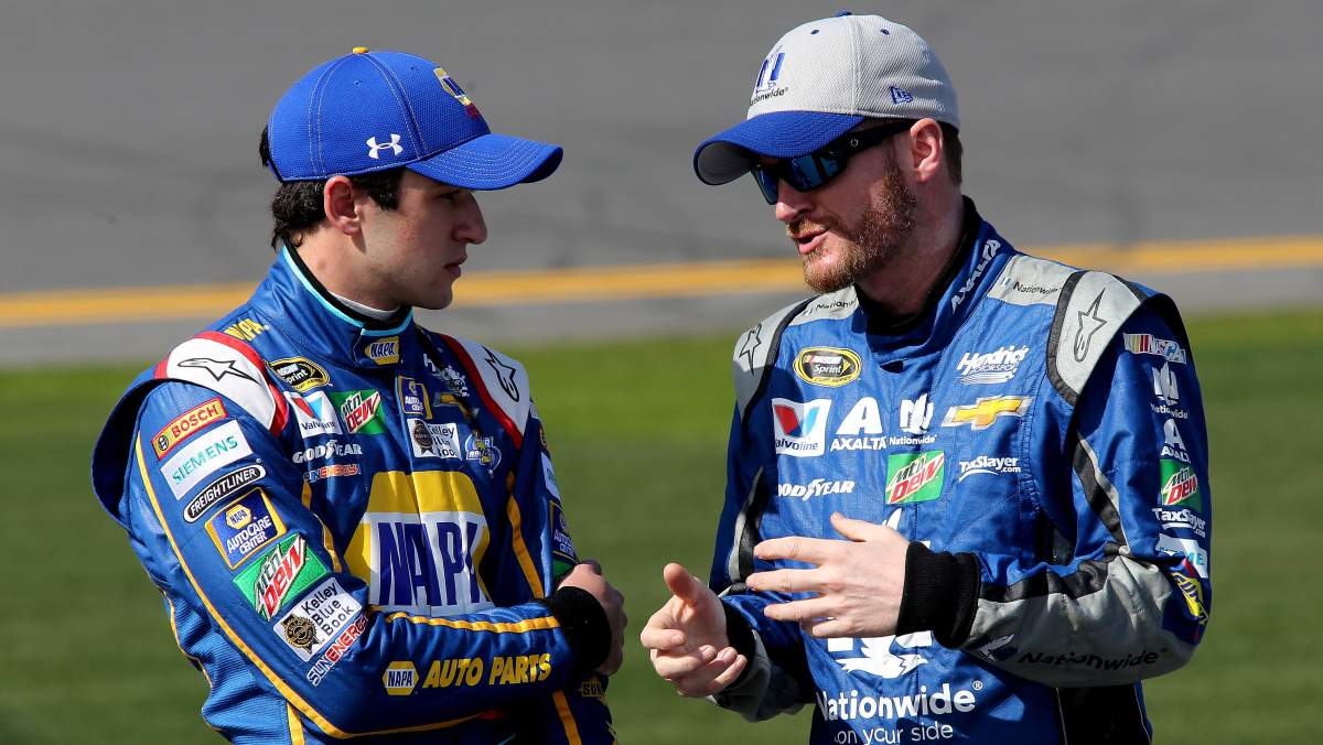 Teammates Chase Elliott and Dale Earnhardt Jr. lead the way in the first of two Can-Am Duels on Thursday. (Getty)