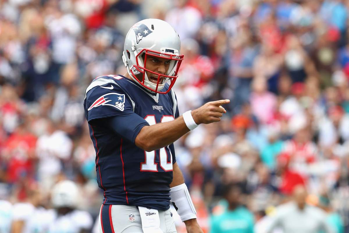 Jimmy Garoppolo took a hard hit in the second quarter and has been ruled out for the rest of the game against the Dolphins. He was tackled and the weight of the defender landed on his shoulder. Garoppolo headed back to the locker room after the injury. Jacoby Brissett entered the game at quarterback for the Patriots.