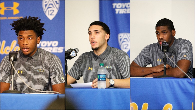 LiAngelo Ball, Jalen Hill and Cody Riley read statements Wednesday at a press conference alongside Bruins coach Steve Alford upon their return to California.