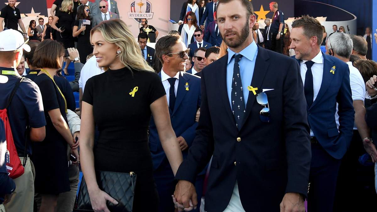 Here’s a look at Gretzky attending Johnson’s first 2018 Ryder Cup match along with Rickie Fowler’s fiancee, Allison Stokke.