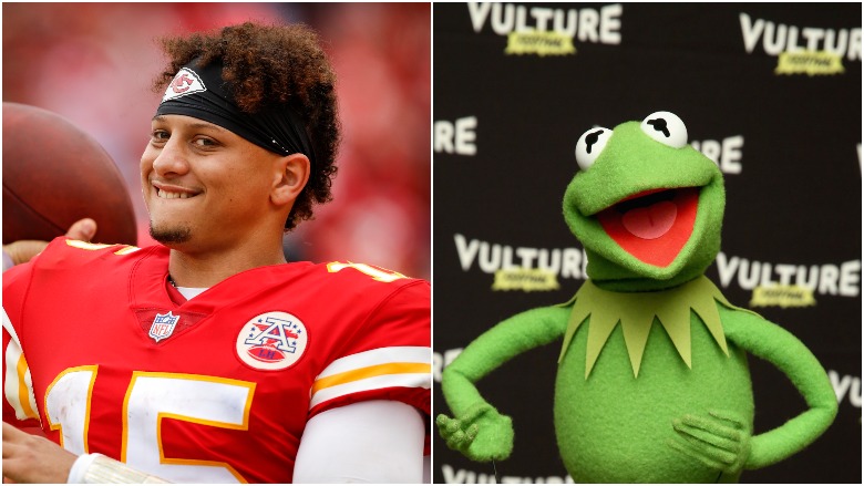 GettyPatrick Mahomes’ voice has drawn comparisons to Kermit the Frog.