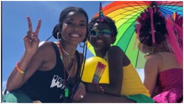 In a series of Instagram Live videos, captured by The Shade Room, Union shared photos and videos of herself, Zion, his older brother Zaire and her new baby Kaavia, who all attended the annual Gay Pride celebration.