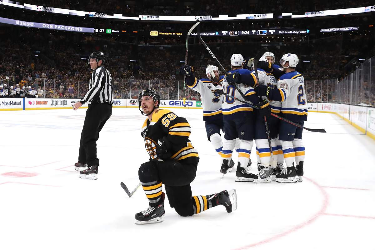 Leading 1-0 halfway through the third period, the St. Louis Blues capitalized on a controversial no-call and netted what would ultimately prove to be the deciding goal in a 2-1 victory in Game 5 of the Stanley Cup Final.
