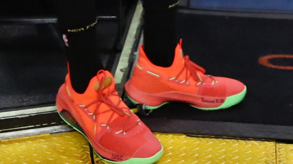 “Stephen Curry’s red and neon #NBAfinals shoes are inspired by “Roaracle” and the Oakland fans’ record levels on a decibel scale,” ESPN’s Nick DePaula tweeted.