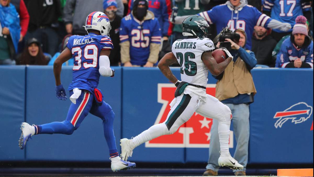 Howard rumbled for 96 yards on 23 carries — 4.17 yards per carry — while Sanders chipped in with another 74 yards, including hitting a home run on a 65-yard touchdown jaunt. Philadelphia finished the day with 218 rushing yards. The only negative was Sanders leaving the game with an injured shoulder.