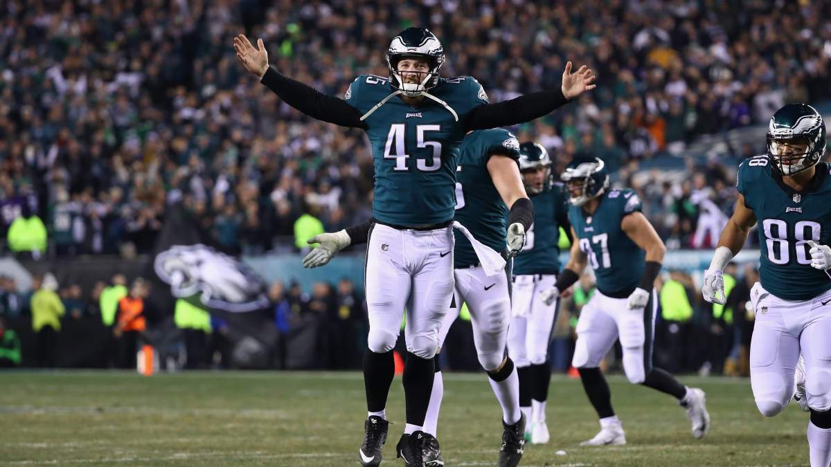 Lovato, a native of Neptune, NJ (about 73 miles from Philadelphia), had assumed long-snapping duties after Jon Dorenbos was jettisoned to New Orleans in 2016. He had filled in as an injury replacement before the Eagles decided to give him the gig on a full-time basis. Dorenbos, of course, went on to get a Super Bowl ring anyway — and the Eagles kind of saved his life by trading him.