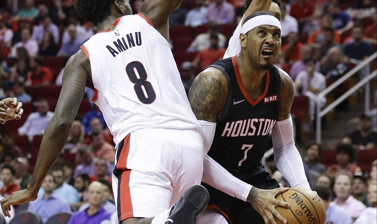 In his last All-Star season, in 2016-17 in New York, Anthony was a lone wing in a morass of post-up big men. He ranked 14th in post-up scoring among NBA players (with a minimum of 40 games) at 3.5 points per game, just behind Hassan Whiteside and just ahead of Jusuf Nurkic—coincidentally, the two centers on his current team. He was the only small forward in the Top 20.