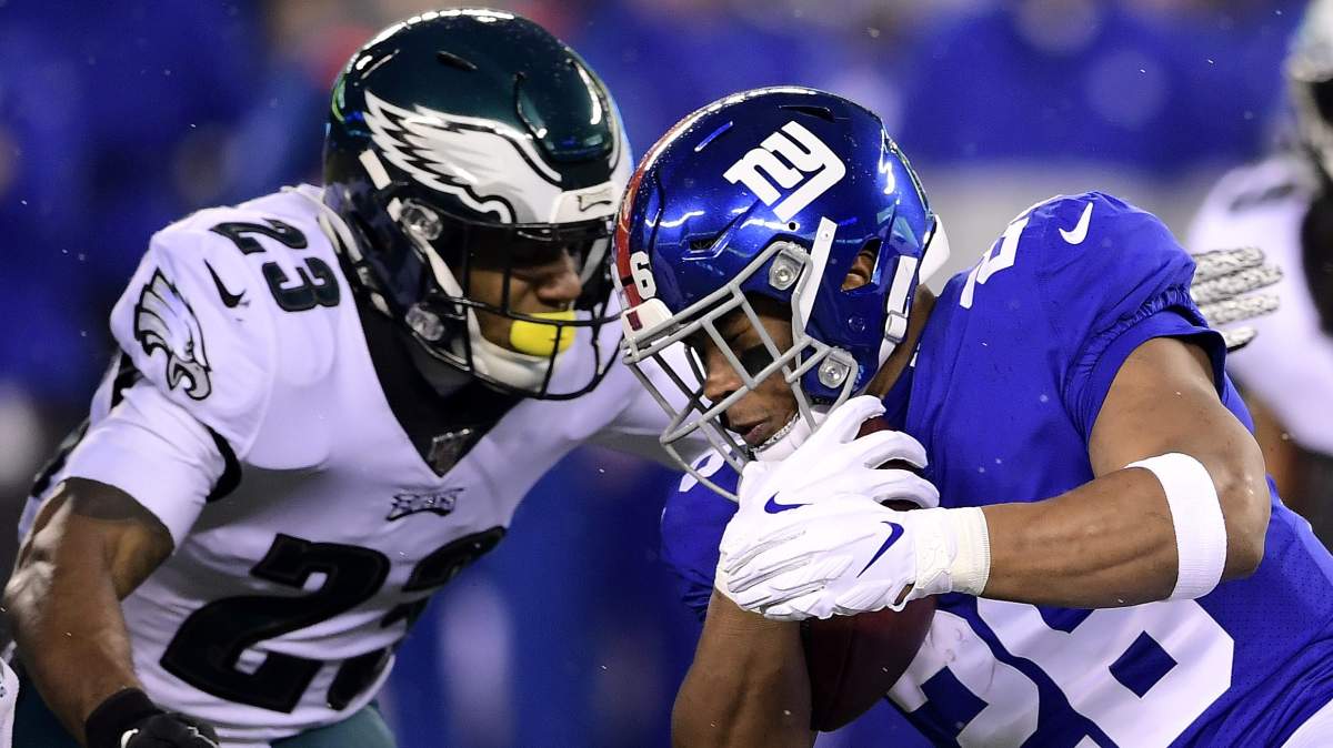 Miles Sanders limped off the field in the first half of the Eagles-Giants game on Sunday with an ankle injury. The rookie running back was shaken up after landing awkwardly while being forced out of bounds. The Eagles listed Sanders as questionable to return. Boston Scott came in and took over the extra ball-carrying duties, not veteran Jordan Howard.