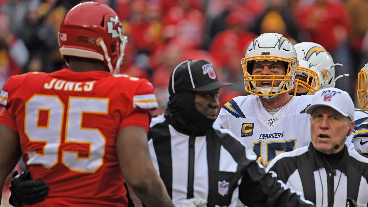 Early in the first quarter, Rivers was taken down to the ground by Chiefs Pro Bowl DT Chris Jones. Visibly upset by the tie-up, the 38-year-old signal-caller took a jab at the 310-pound lineman before the pair stood to their feet and exchanged words.