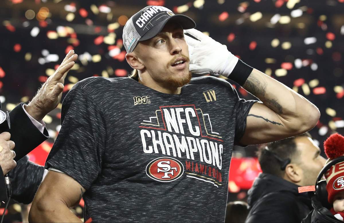 49ers All-Pro tight end George Kittle, who has established himself as one of the best tight ends in football over the last two seasons, took his celebration to hilarious heights. After the Niners won the NFC West, Kittle began wearing a T-shirt with a catchphrase his quarterback Jimmy Garoppolo used after a big win earlier this season.