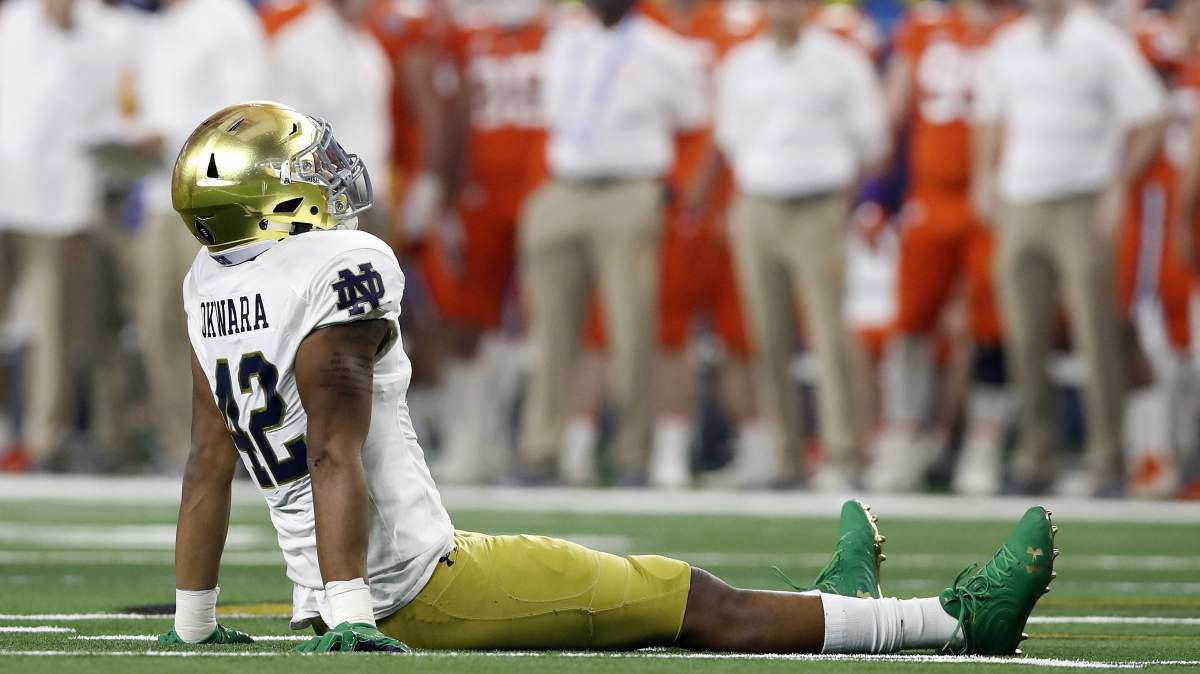 “Although he suffered a season-ending injury in Week 11 this past year, there’s no reason Okwara should have been available in the third round. With his explosiveness off the line, overall athleticism and long arms, Okwara was a first-round talent in this draft. Prior to getting hurt, Okwara was having one of the top seasons in college football at his position by owning an elite 90.4 pass-rush grade.”