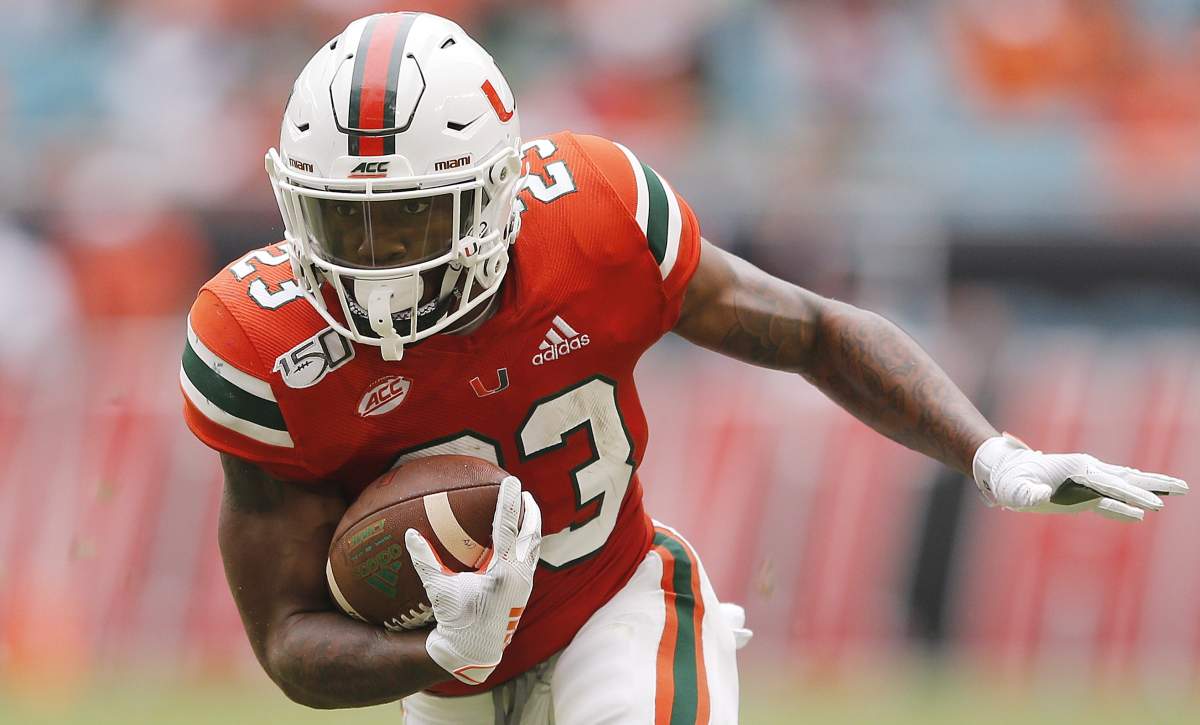 The Hurricanes will have an exciting new quarterback under center: D’Eriq King, who transferred over from Houston after last season. King chose to redshirt and transfer after four games last year, so his play in 2019 was limited, but in his last full season in 2018, he was lights out. He threw for 2,982 yards, 36 touchdowns and six interceptions that year, while also rushing for an additional 686 yards and 14 scores. His 50 touchdowns that season led the nation. He’s a definite dual-threat, and he knows it.