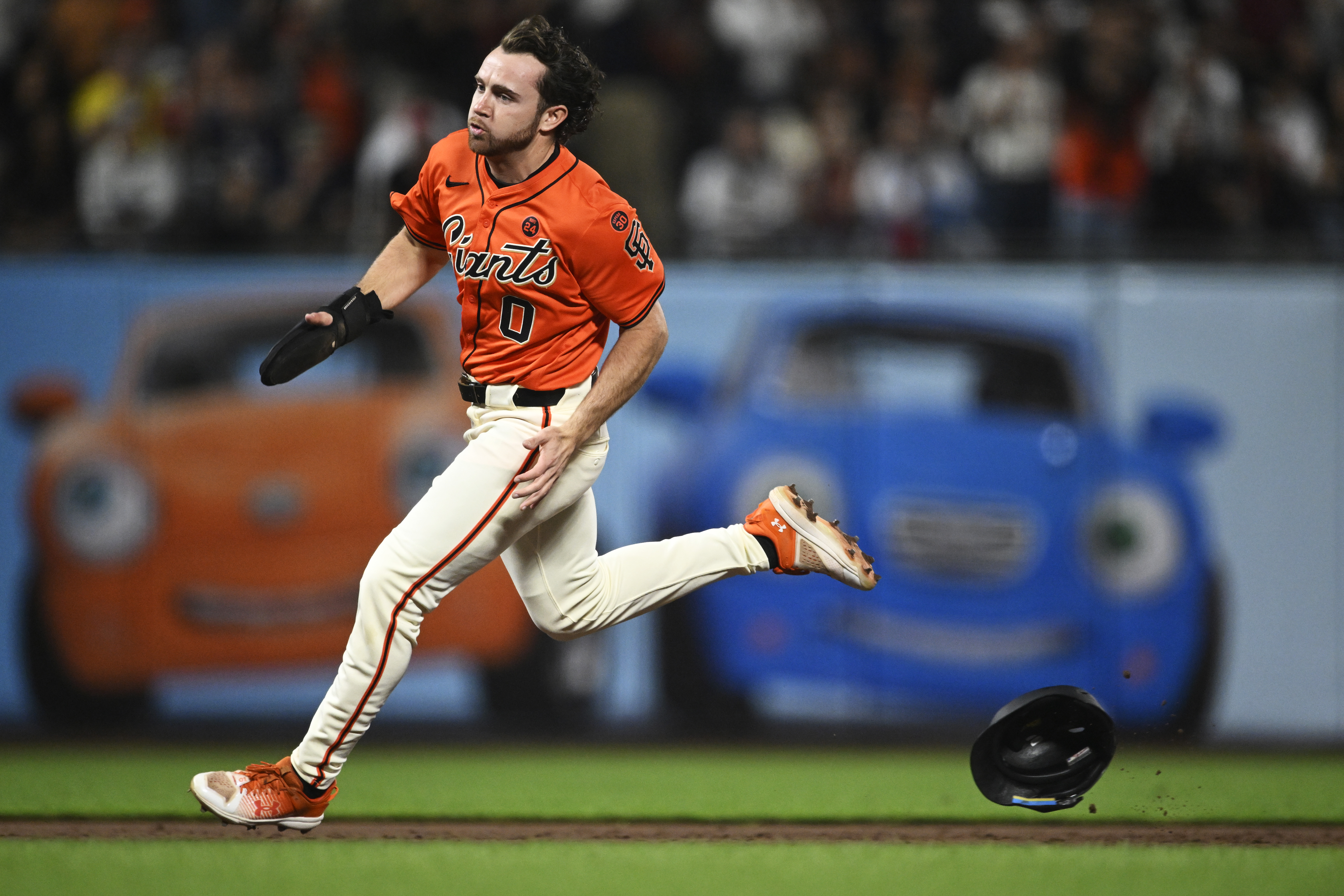 GettySAN FRANCISCO, CALIFORNIA – SEPTEMBER 27: Brett Wisely #0 of the San Francisco Giants looses his helmet as he rounds third base before heading home against the St. Louis Cardinals in the second inning at Oracle Park on September 27, 2024 in San Francisco, California. (Photo by Eakin Howard/Getty Images)