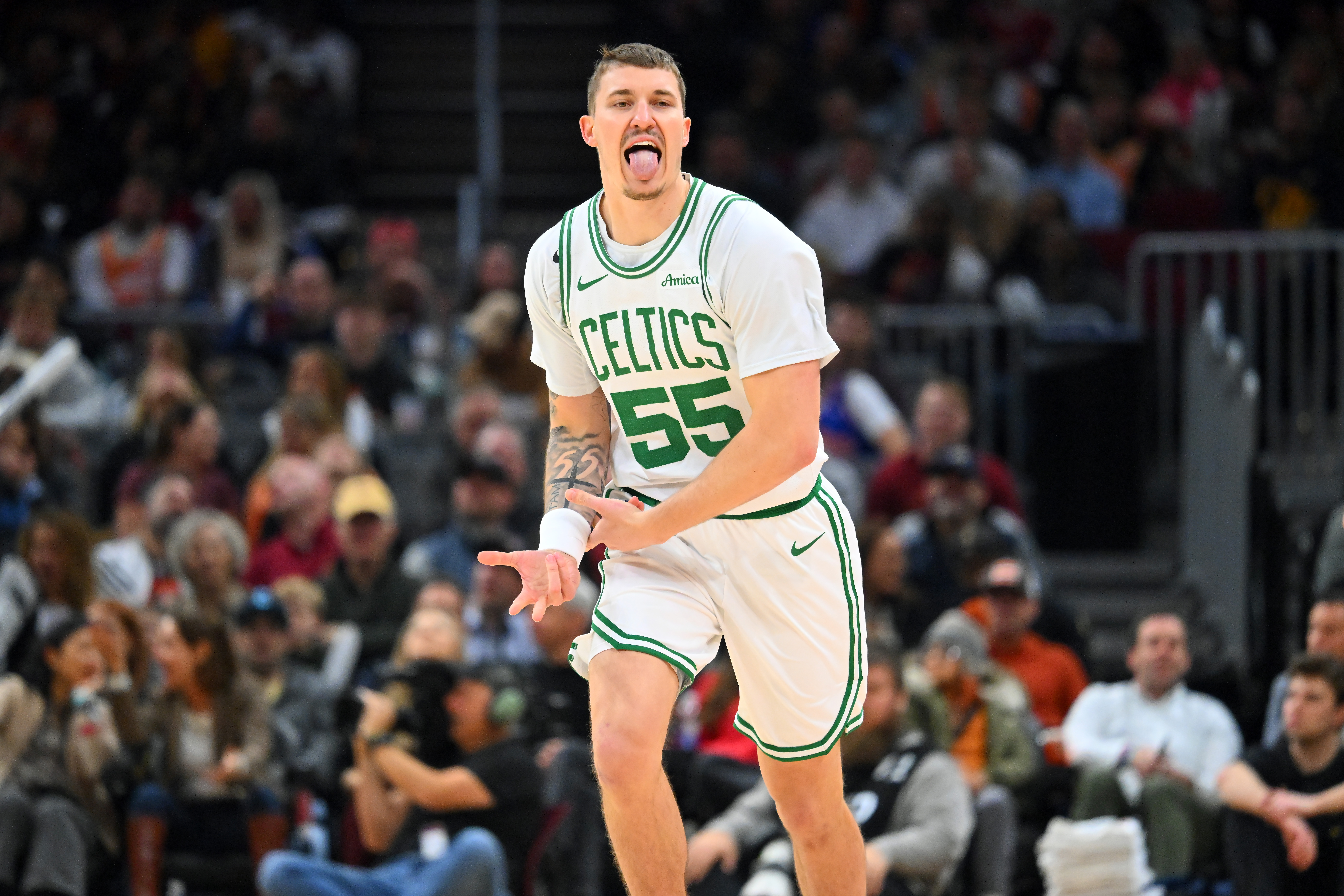 GettyCLEVELAND, OHIO – NOVEMBER 30: Baylor Scheierman #55 of the Boston Celtics celebrates during the third quarter against the Cleveland Cavaliers at Rocket Arena on November 30, 2025 in Cleveland, Ohio. The Celtics defeated the Cavaliers 117-115. (Photo by Jason Miller/Getty Images)