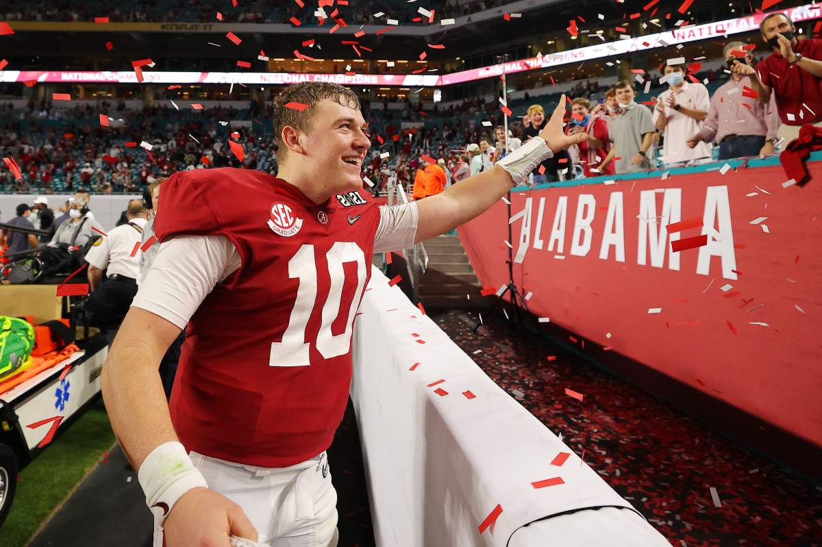 Former Alabama quarterback Mac Jones, who is heading into his third year with the New England Patriots, was shopped to other NFL teams this offseason, according to an April 4 report from Mike Florio of NBCSports.
