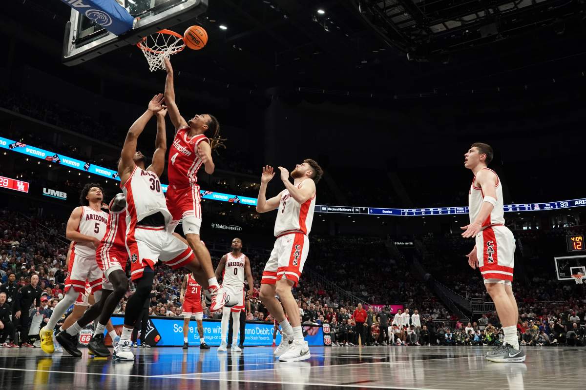 GettyKANSAS CITY, MISSOURI – MARCH 14: Anthony Dell’Orso #3 of the Arizona Wildcats rebounds against Kingston Flemings #4 of the Houston Cougars in the first half during the championship game of the Big 12 Tournament at T-Mobile Center on March 14, 2026 in Kansas City, Missouri. (Photo by Ed Zurga/Getty Images)