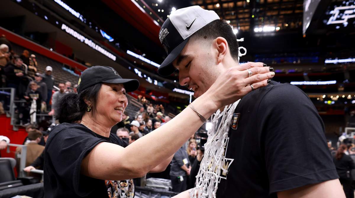 Julia has become one of the faces of March Madness given her unwavering support for Purdue. Zach’s mom can be seen dancing in the crowd or embracing the Boilermakers big man after another NCAA tournament win. Heading into the Final Four, Julia was part of a heartwarming TNT feature where she recorded a message to be played for Zach.