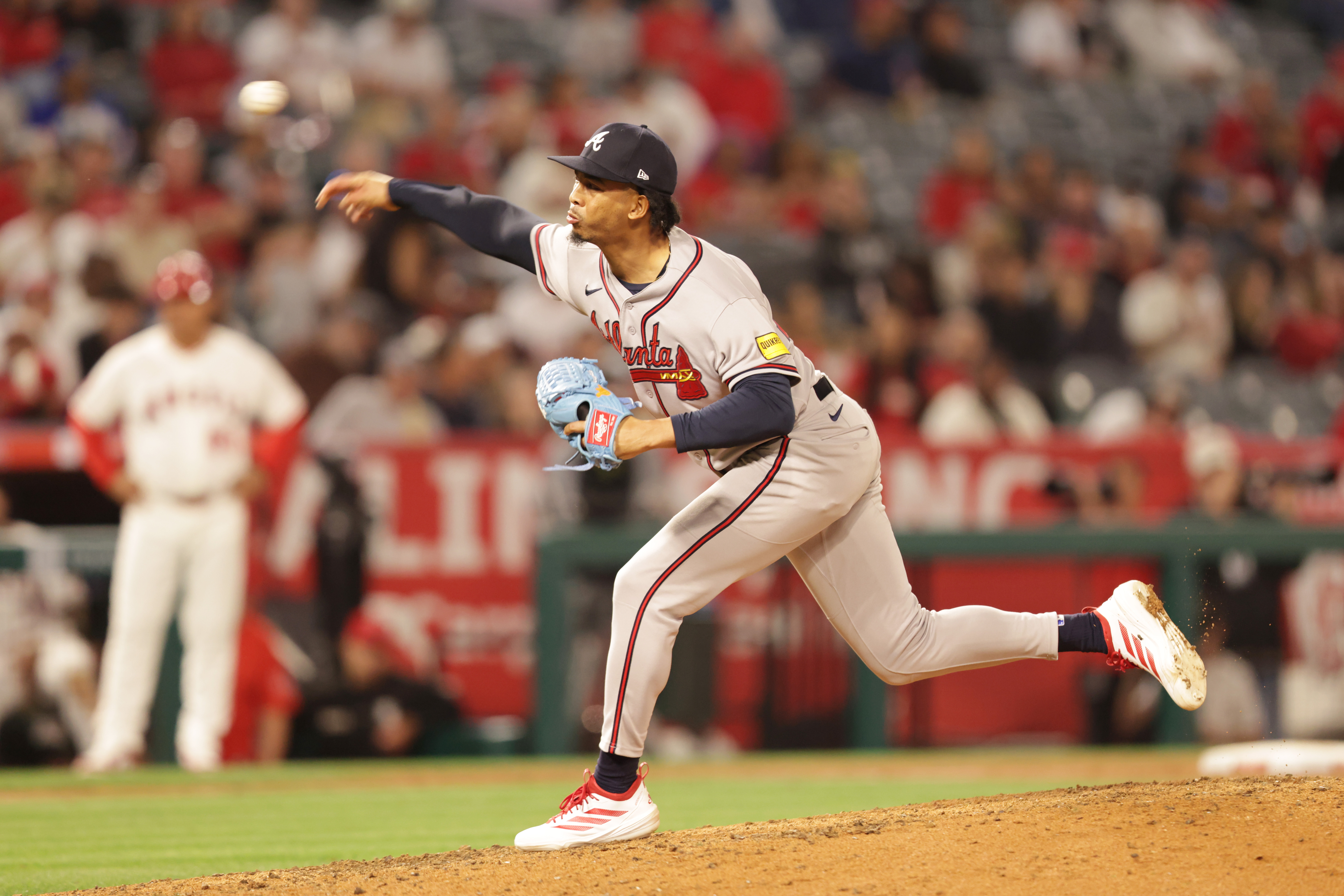 GettyOsvaldo Bido #70 of the Atlanta Braves throws a pitch in the seventh inning against the Los Angeles Angels at Angel Stadium of Anaheim on April 06, 2026 in Anaheim, California.