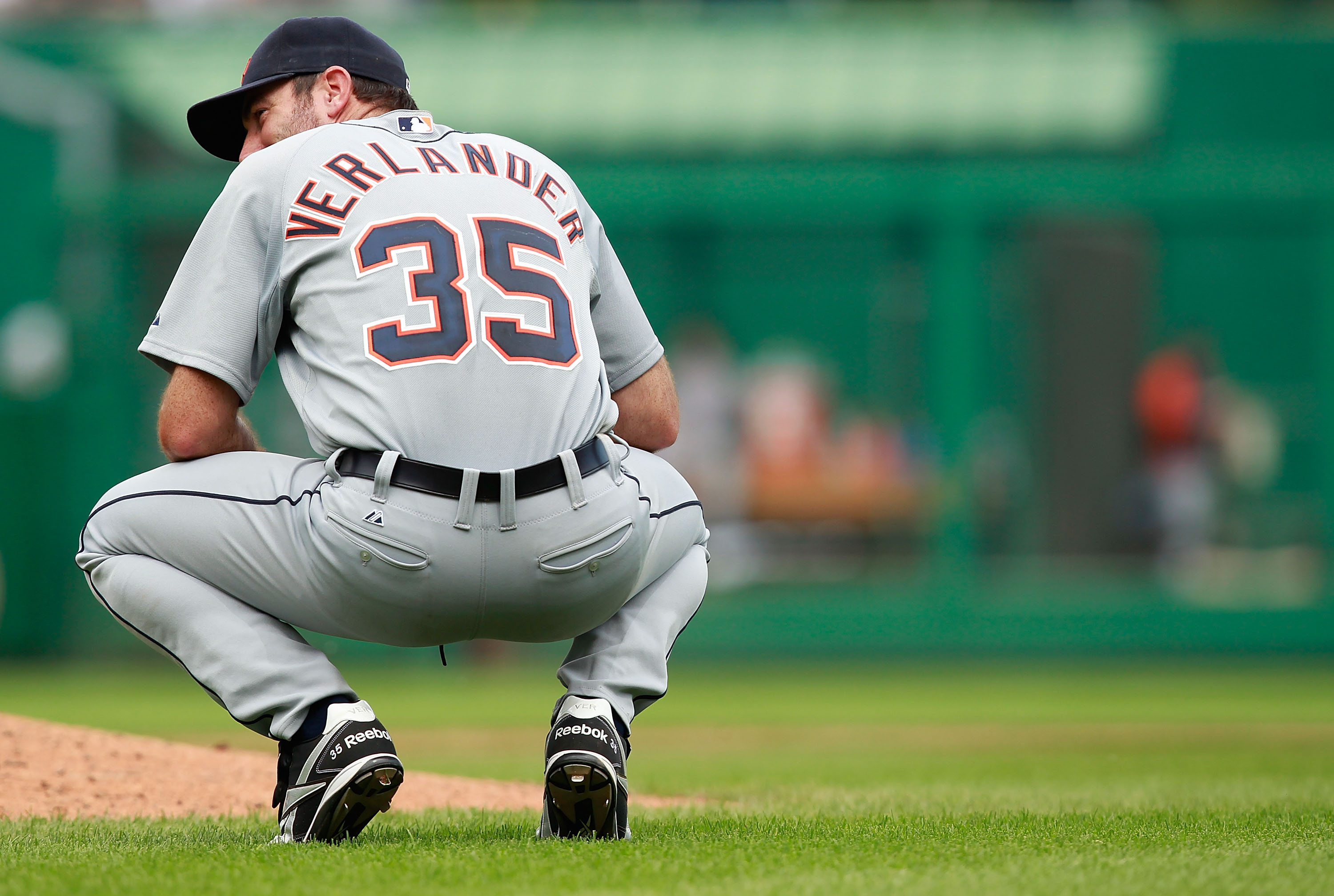 GettyJustin Verlander #35 of the Detroit Tigers reacts after his teammate Ryan Raburn #25 saved a home run against the Pittsburgh Pirates during the interleague game on June 24, 2012 at PNC Park in Pittsburgh, Pennsylvania.