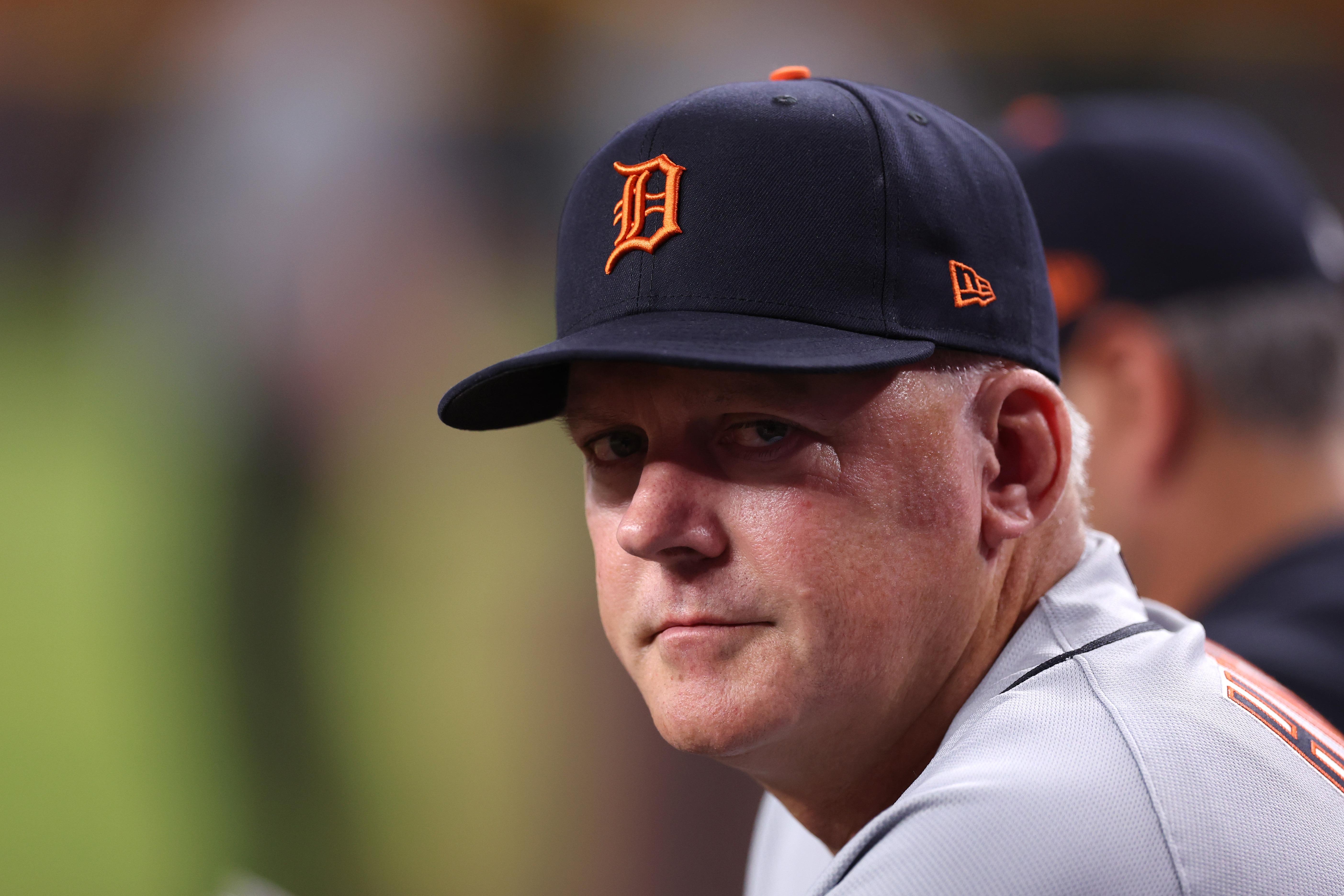 GettyManager A.J. Hinch #14 of the Detroit Tigers looks on from the dugout during the seventh inning of the Arizona Diamondbacks home opener at Chase Field on March 30, 2026 in Phoenix, Arizona.