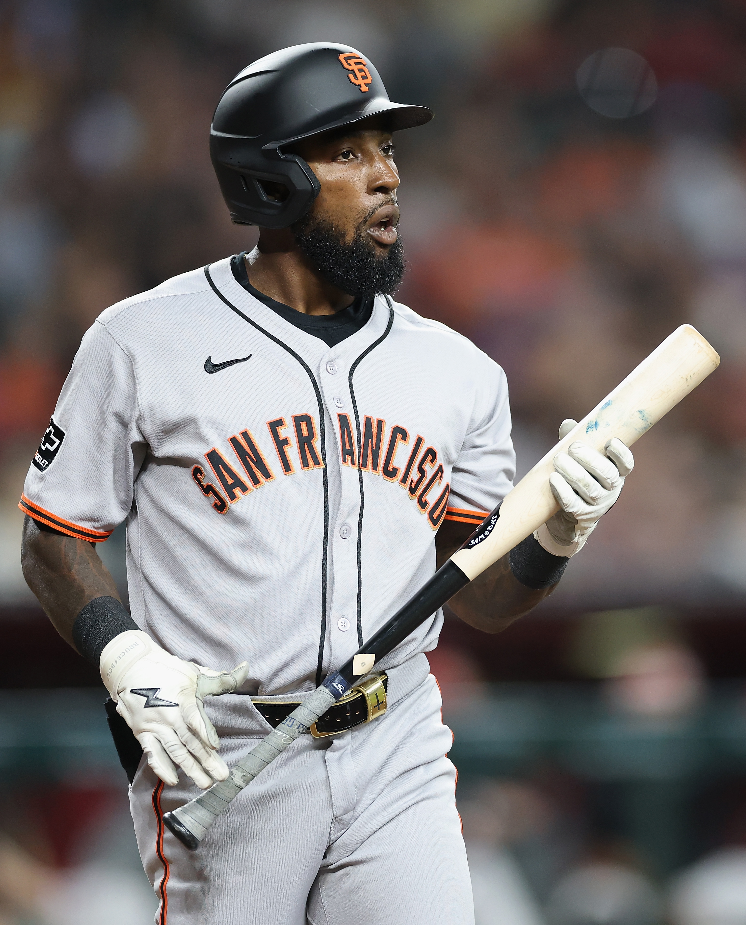GettyDaniel Johnson #56 of the San Francisco Giants at bat during the MLB game at Chase Field on July 01, 2025 in Phoenix, Arizona.
