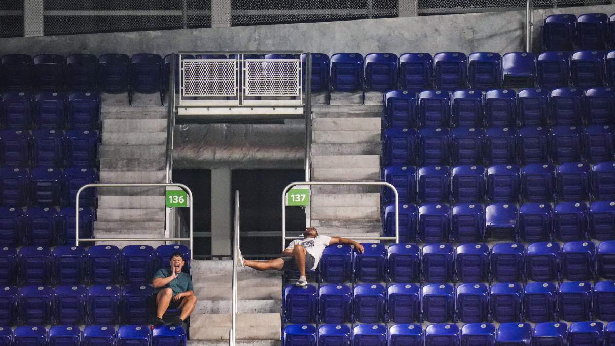 Five days before the series, a different baseball scene unfolded in Miami: 7,646 fans scattered around LoanDepot Park for a Marlins-Reds game. Luis Diaz and John Hewitt, Marlins fans trying to stay optimistic, couldn’t help but notice who wasn’t there. “There’s more Reds fans than Marlins fans,” Diaz said, while Hewitt pointed out the wide-open sections behind home plate.