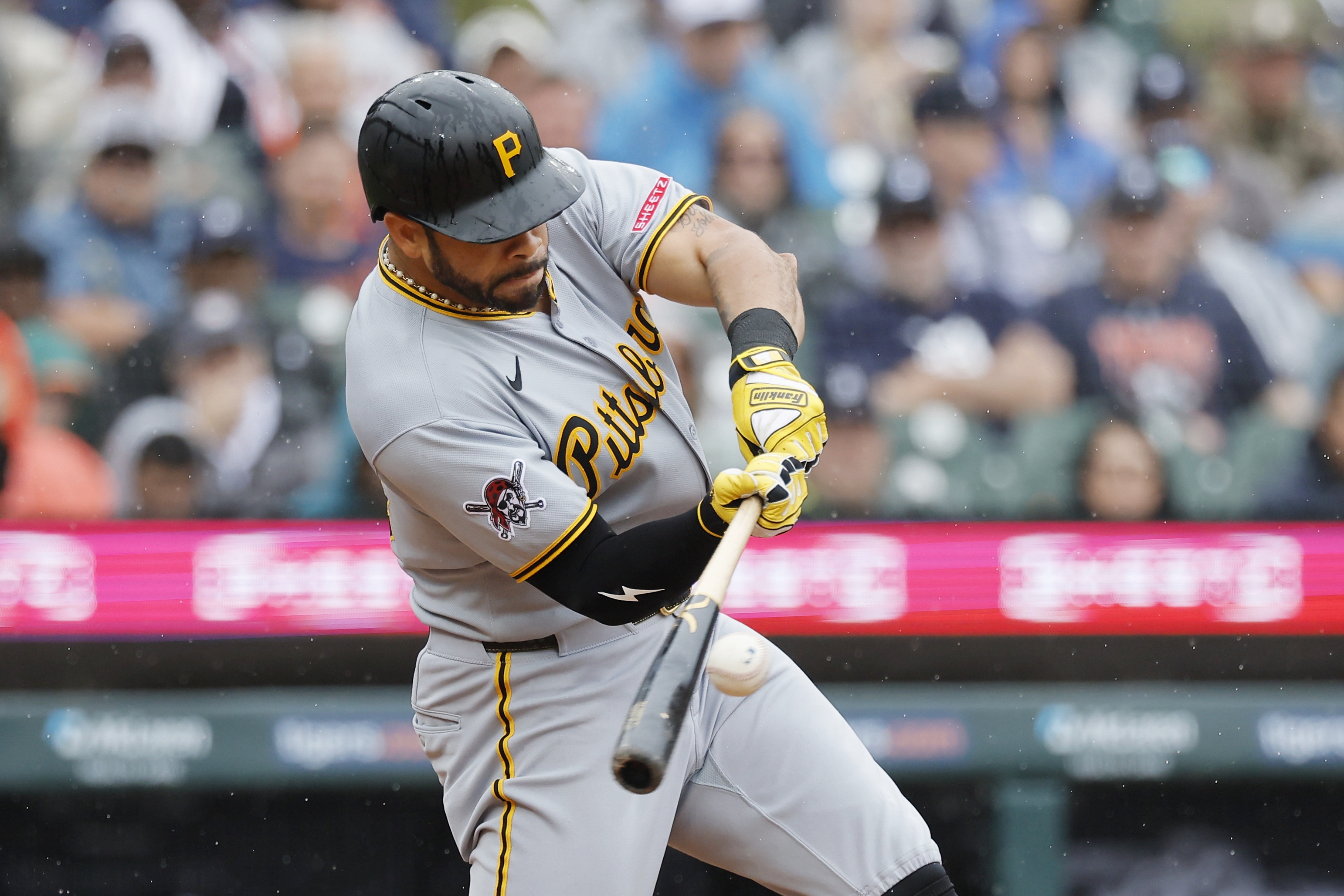 GettyDETROIT, MI – JUNE 19: Tommy Pham #28 of the Pittsburgh Pirates hits a fly ball for an out against the Detroit Tigers during the sixth inning at Comerica Park on June 19, 2025 in Detroit, Michigan. (Photo by Duane Burleson/Getty Images)