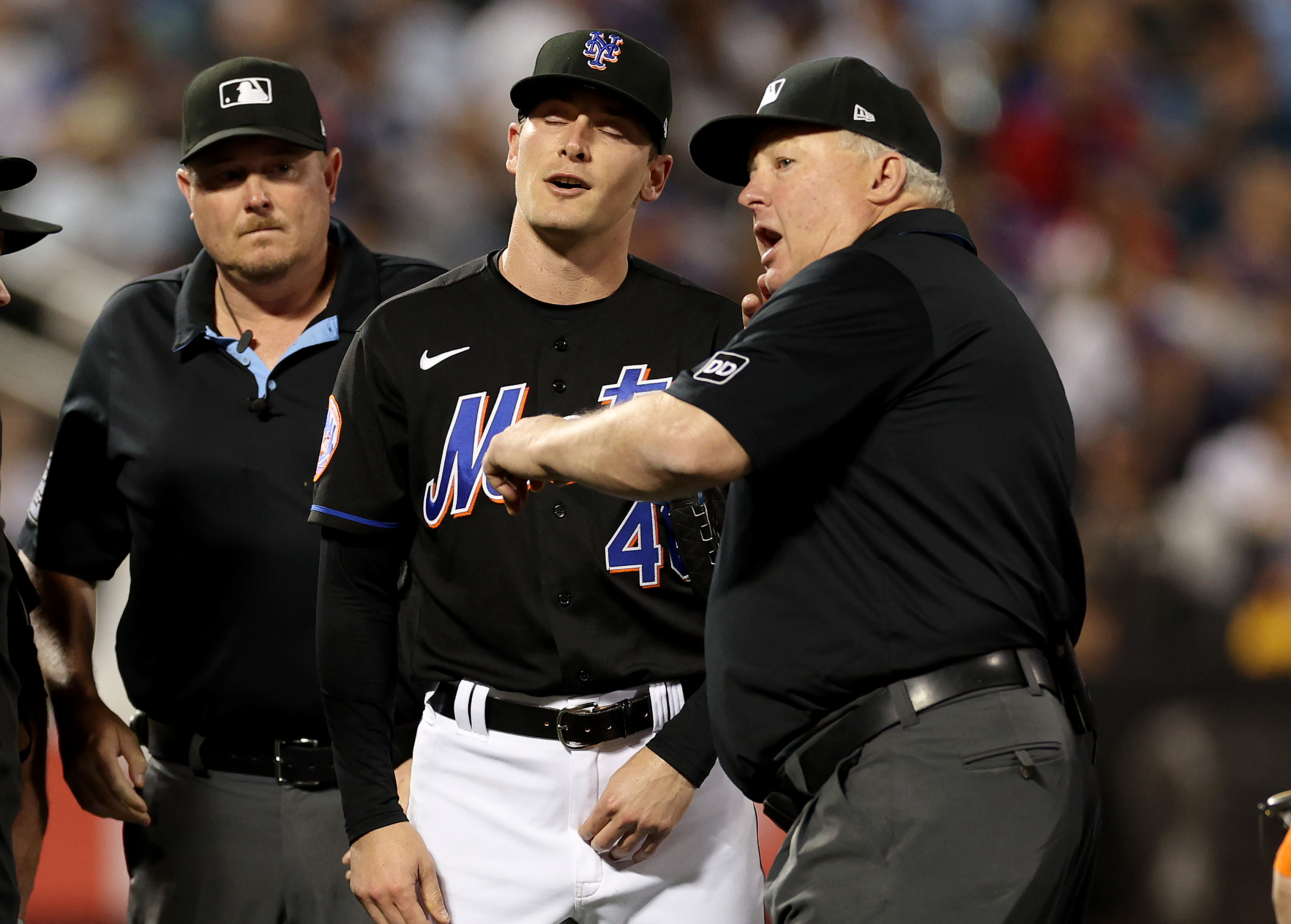 GettyNEW YORK, NEW YORK – JUNE 13: Umpire Bill Miller throws out New York Mets pitcher Drew Smith #40 for a suspicious substance on his hands before the start of the seventh inning against the New York Yankees at Citi Field on June 13, 2023 in the Flushing neighborhood of the Queens borough of New York City. (Photo by Elsa/Getty Images)