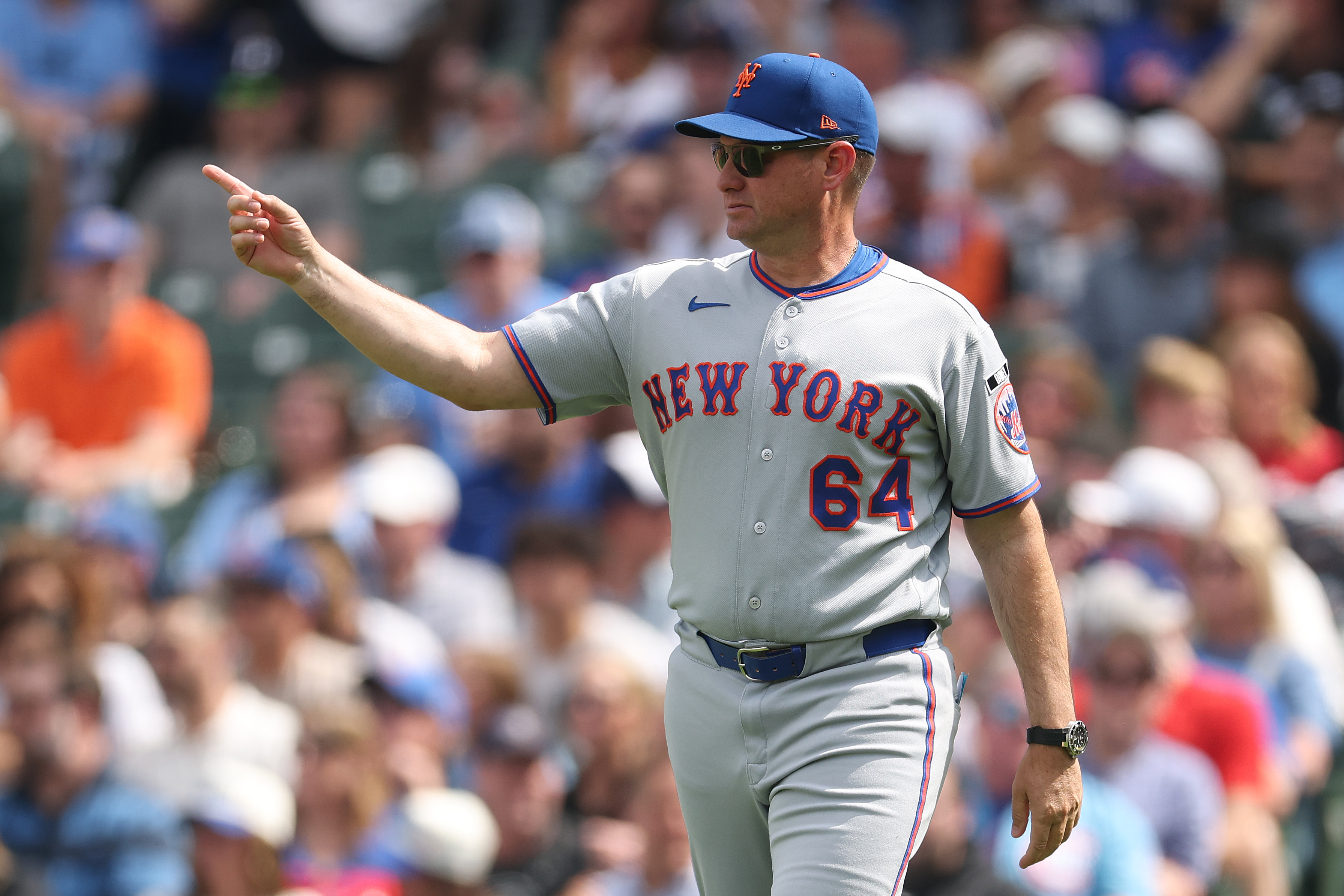 GettyCarlos Mendoza #64 of the New York Mets makes a pitching change against the Chicago Cubs at Wrigley Field on April 17, 2026 in Chicago, Illinois.