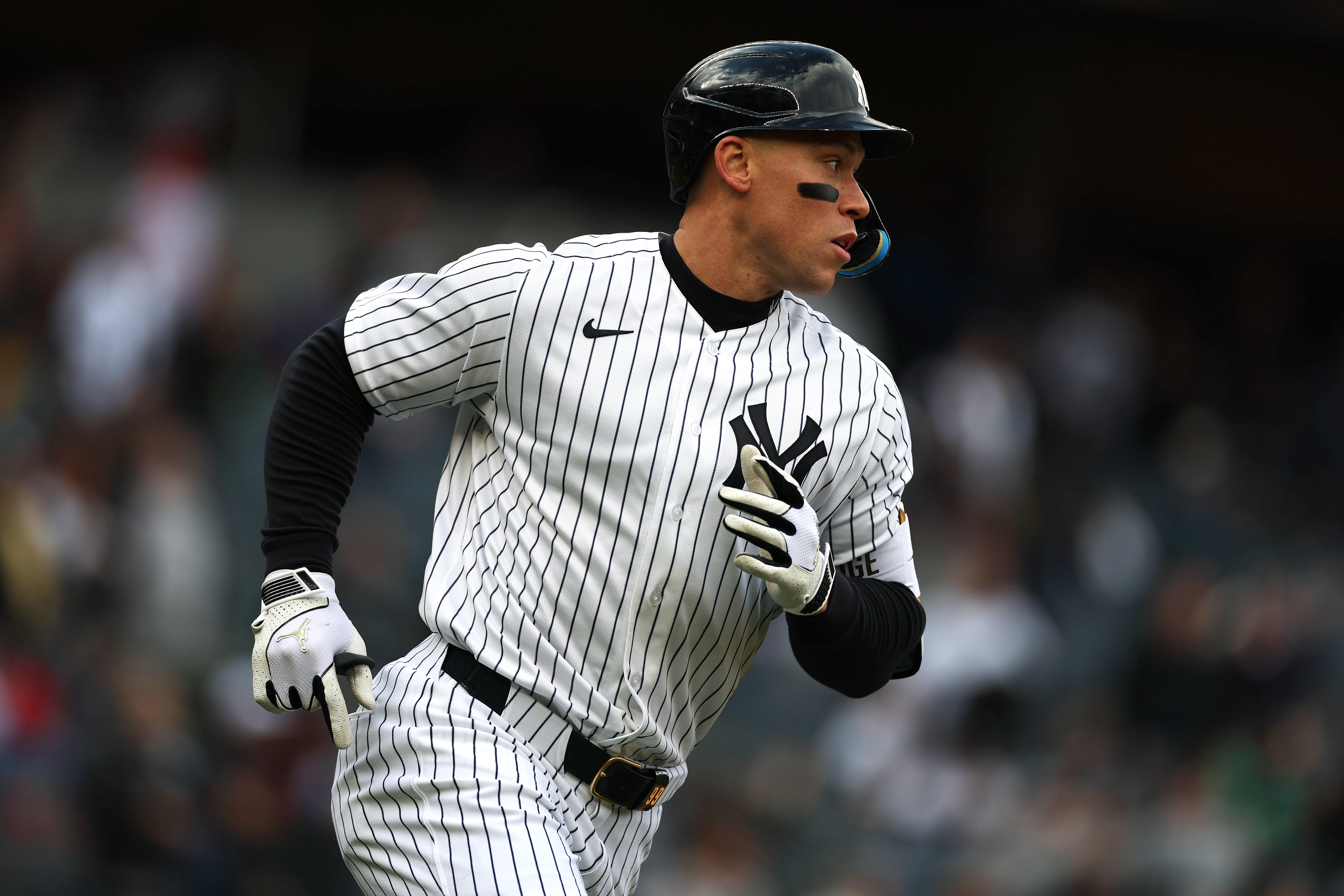 GettyAaron Judge #99 of the New York Yankees rounds the bases after hitting a two run home run in the first inning against Cole Ragans #55 of the Kansas City Royals during their game at Yankee Stadium on April 19, 2026 in New York City.