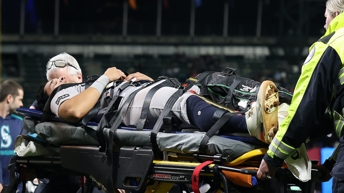 The New York Yankees continue to hold first place in the American League East, despite a lengthy series of injuries to key players. But on Monday night in Seattle, they suffered their most horrifying injury yet, as 26-year-old third baseman Oswaldo Cabrera had to be taken from the field by ambulance, on a stretcher.
