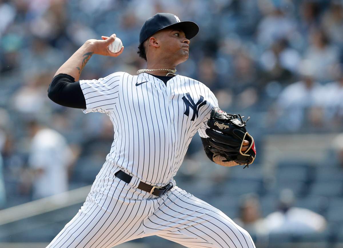 GettyNEW YORK, NY – AUGUST 17: Luis Gil #81 of the New York Yankees pitches against the Boston Red Sox in the first inning during game two of a doubleheader at Yankee Stadium on August 17, 2021 in New York City. (Photo by Adam Hunger/Getty Images)