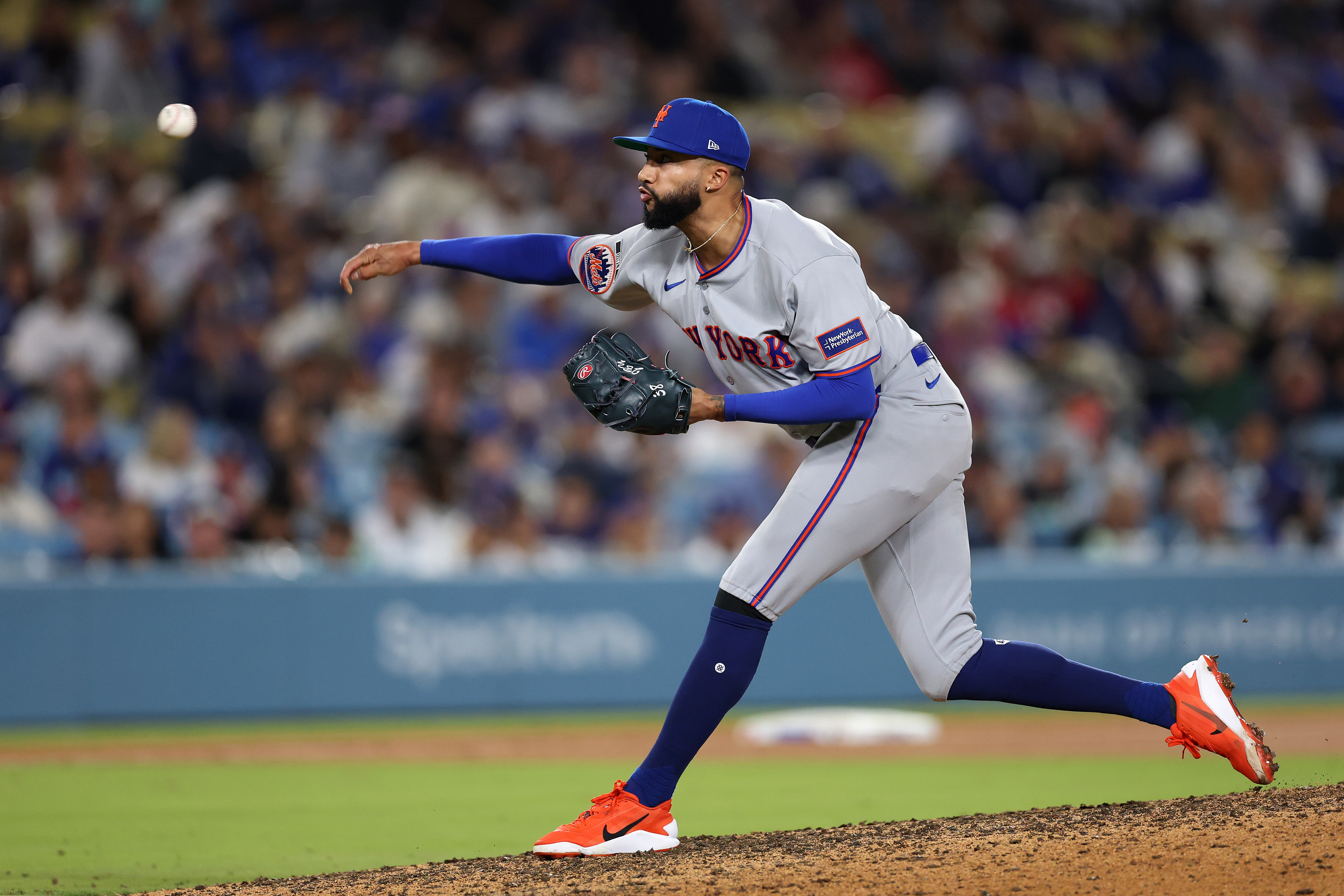 GettyDevin Williams #38 of the New York Mets pitches against the Los Angeles Dodgers during the eighth inning at Dodger Stadium on April 15, 2026 in Los Angeles, California. All players are wearing the number 42 in honor of Jackie Robinson Day.