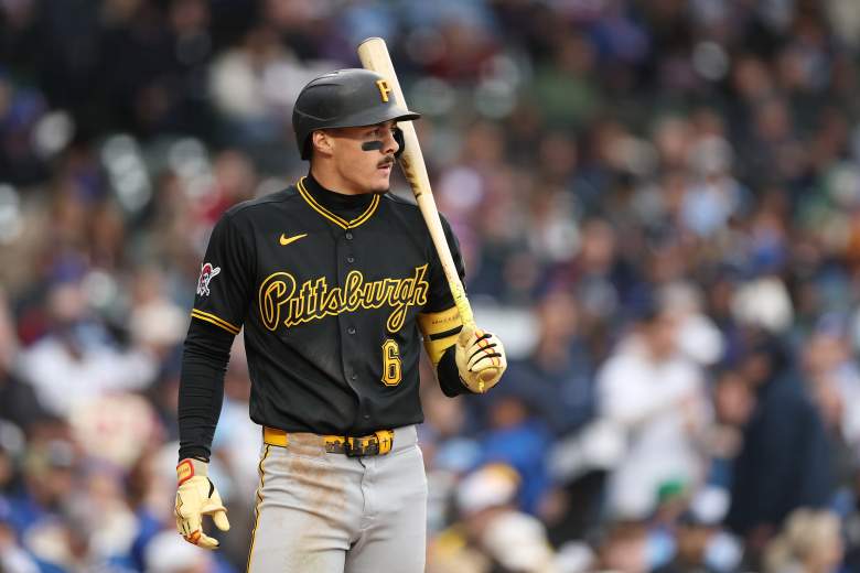 GettyKonnor Griffin #6 of the Pittsburgh Pirates looks on from the dugout against the Chicago Cubs at Wrigley Field on April 10, 2026 in Chicago, Illinois.