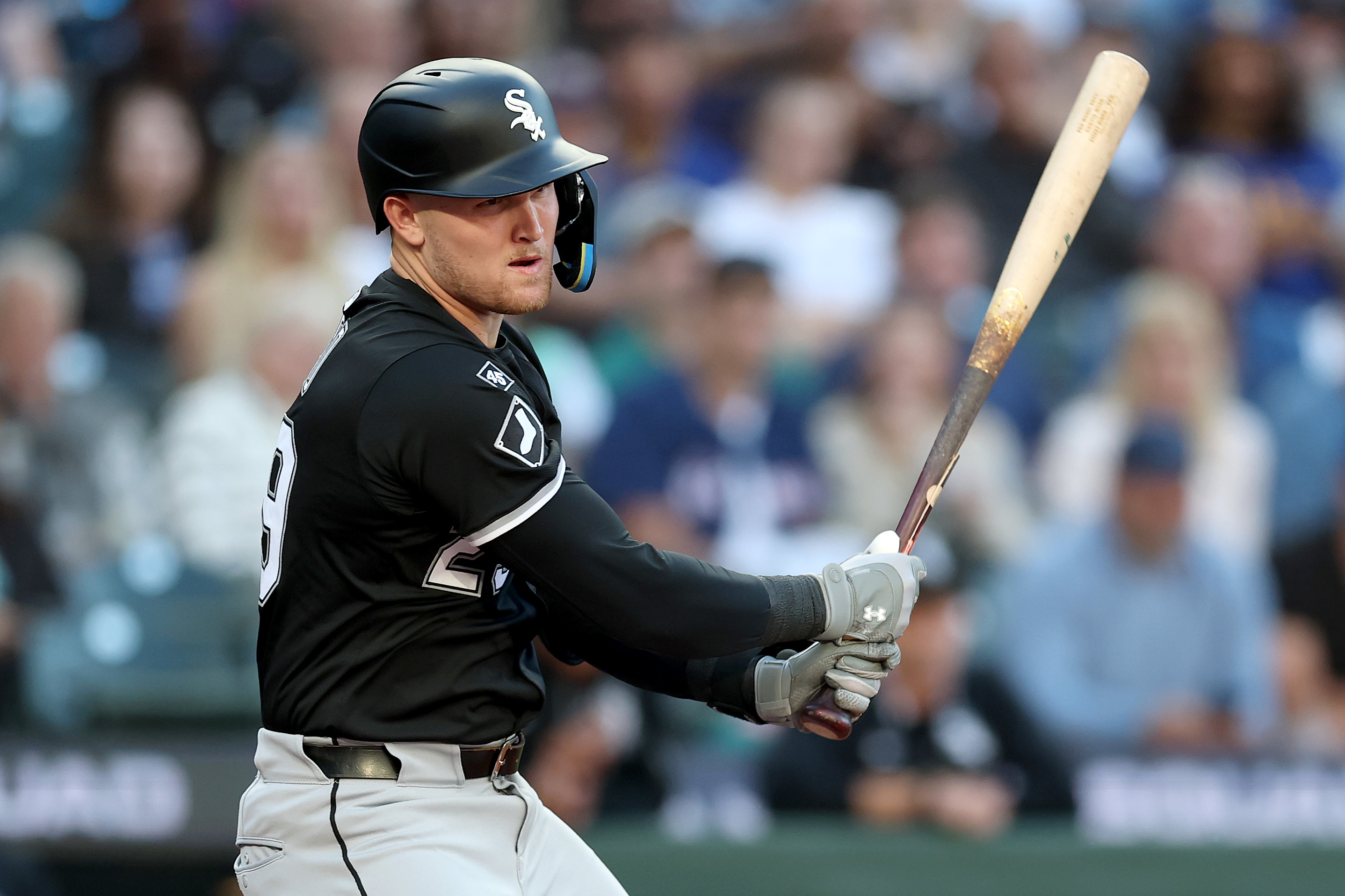 GettySEATTLE, WASHINGTON – AUGUST 06: Curtis Mead #29 of the Chicago White Sox at bat against the Seattle Mariners at T-Mobile Park on August 06, 2025 in Seattle, Washington. (Photo by Steph Chambers/Getty Images)