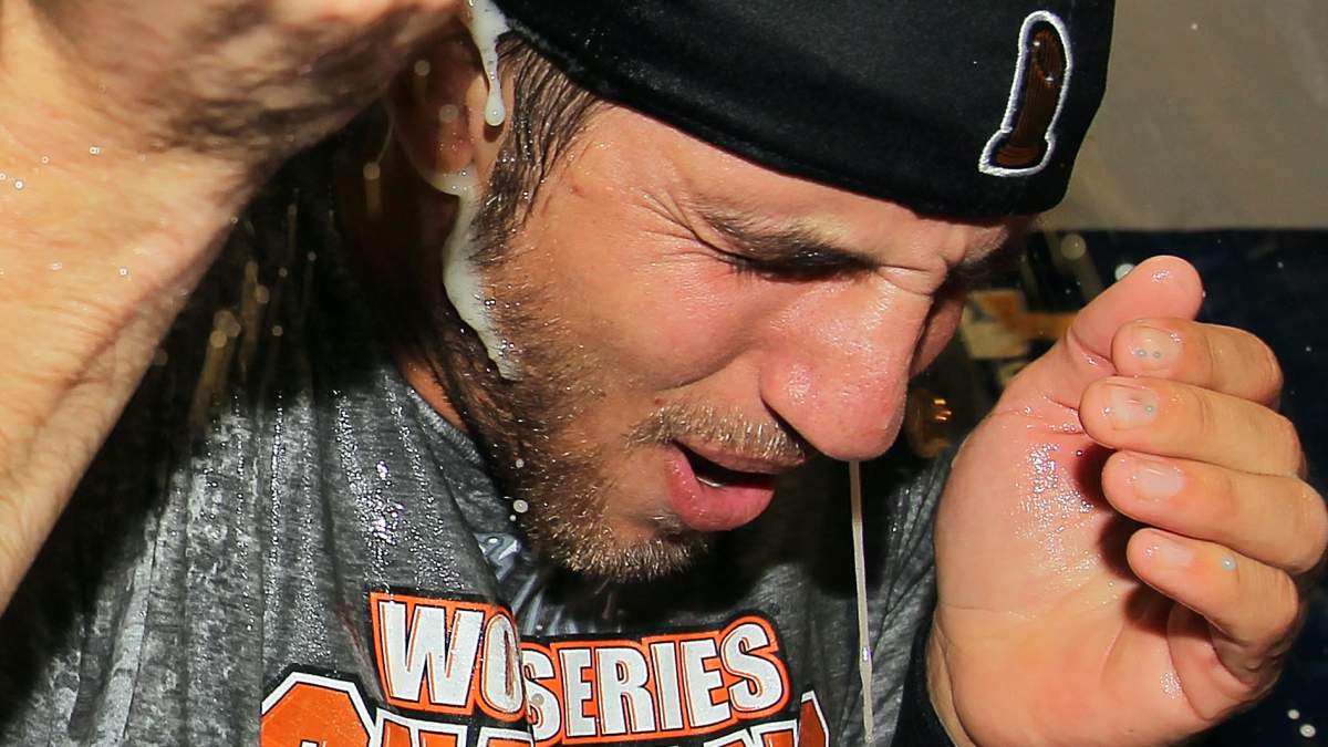 GettyMadison Bumgarner celebrating the 2014 World Series win with the San Francisco Giants.