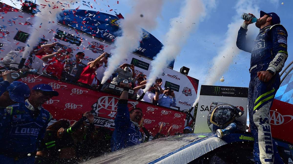 GettyJimmie Johnson’s team celebrates a win at Richmond Raceway.