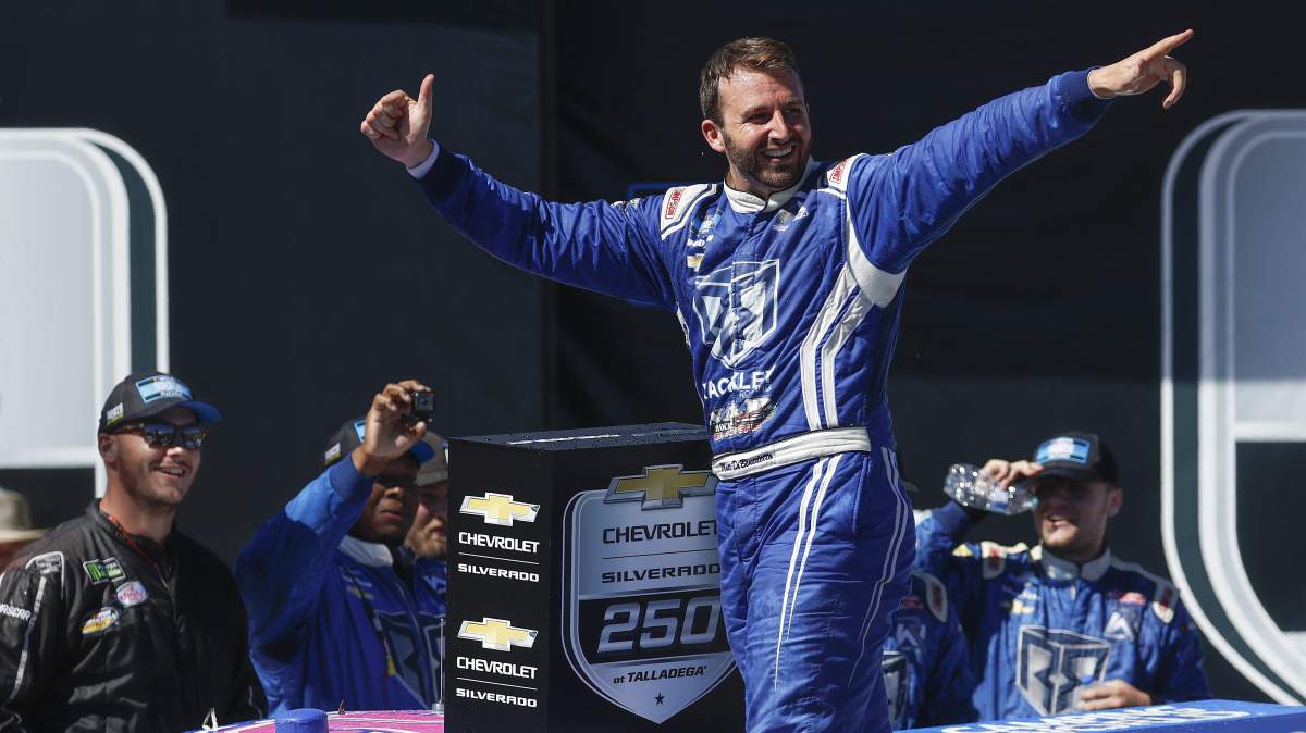 The Camping World Truck Series race at Talladega Superspeedway came to an end with a massive wreck as drivers crossed the finish line. There were questions about which driver had won, but it was Matt DiBenedetto who ultimately made the trip to Victory Lane.