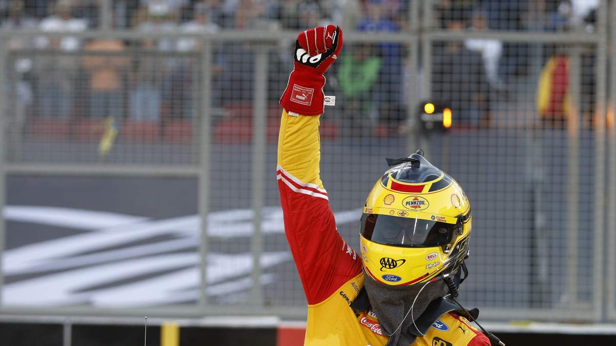 GettyJoey Logano poses with his Busch Light Clash trophy.