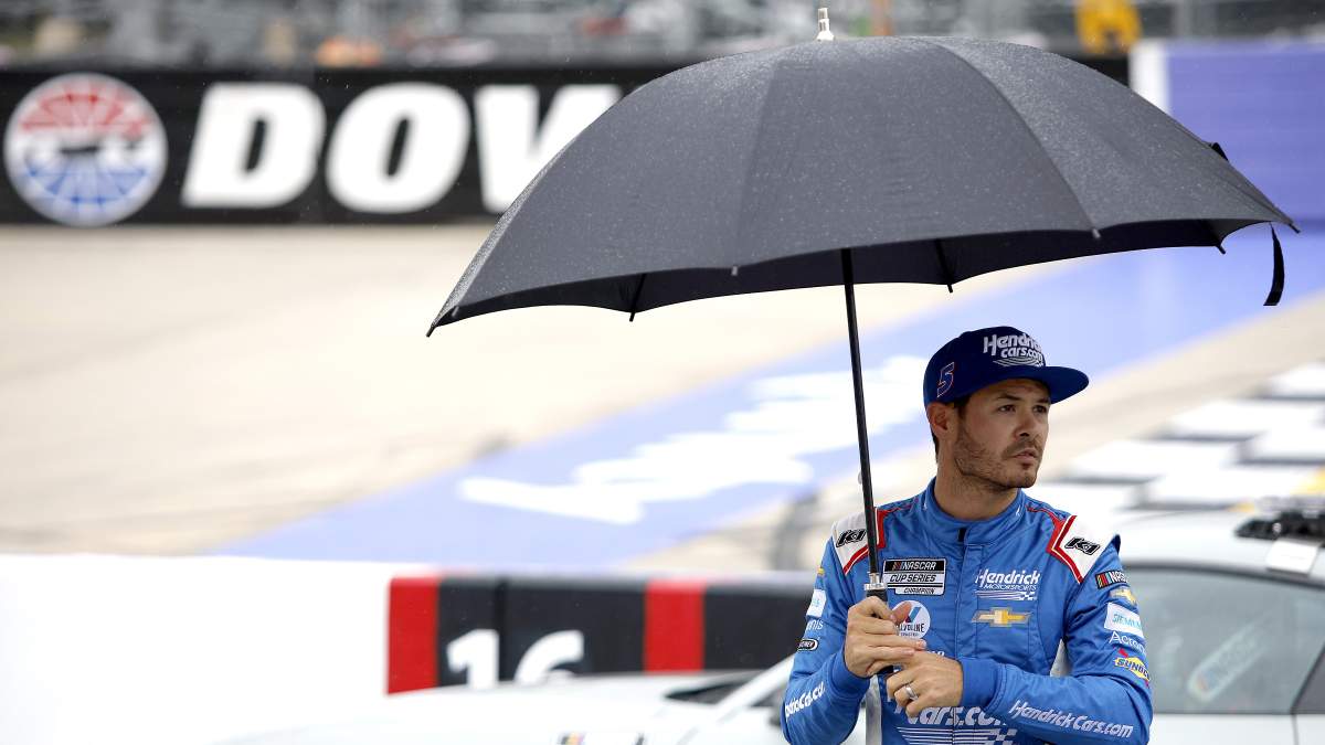 The DuraMax Drydene 400 at Dover Motor Speedway will resume at 12 p.m. ET. FS1 will provide coverage as Larry McReynolds joins Mike Joy and Clint Bowyer. Kyle Larson and Chase Elliott will lead the field to the green flag after making the decision to stay out on the track while other drivers headed down pit road for fuel and tires.