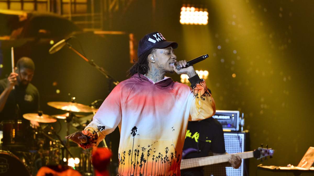GettyWiz Khalifa performs during halftime of an NBA game.
